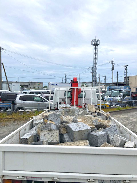 外した石をトラックに積んで搬出し、自社工場にて石を砕きます。