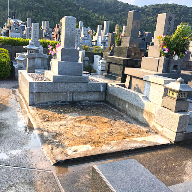 石の撤去後、きれいに墓地をならし、更地に戻します。